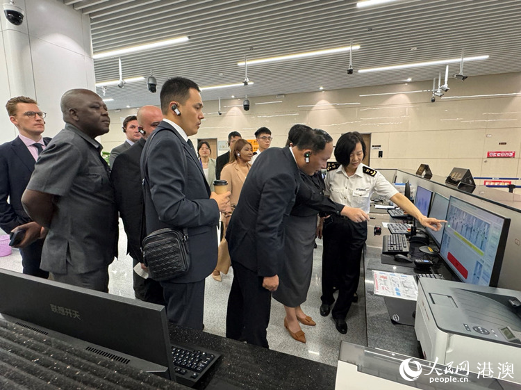參訪團(tuán)饒有興趣地了解通關(guān)查驗(yàn)方式。人民網(wǎng)記者 富子梅攝