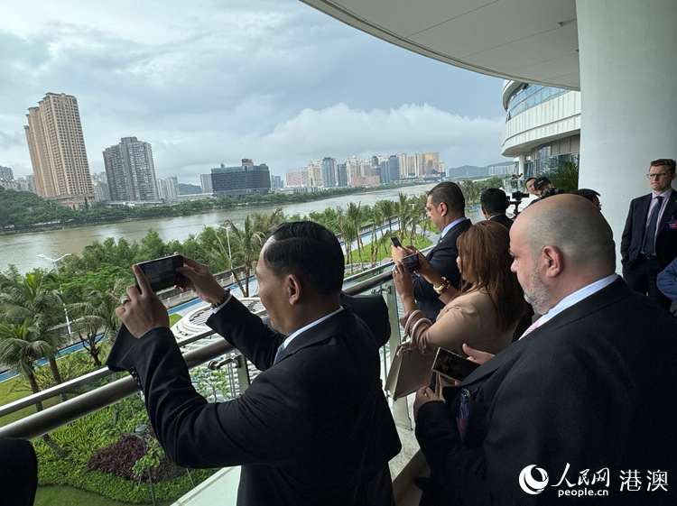 參訪團(tuán)從橫琴看澳門(mén)、拍澳門(mén),實(shí)地感受“琴澳一體化”進(jìn)程。人民網(wǎng)記者 富子梅攝